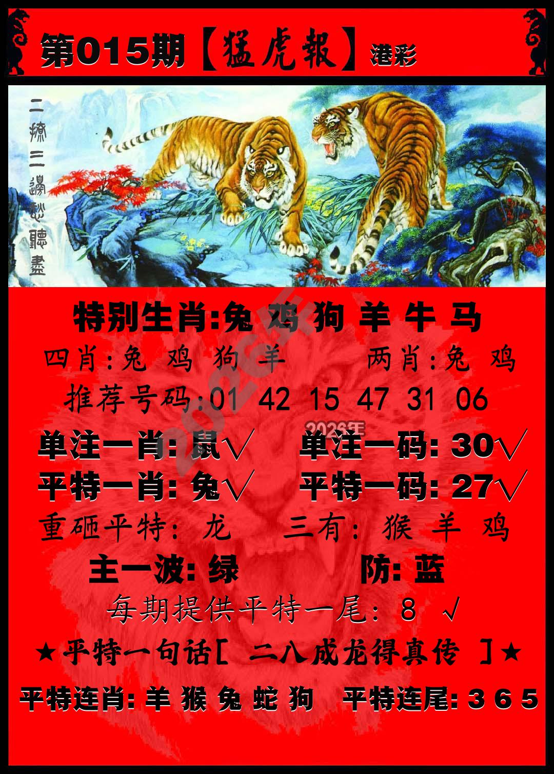 | 015期稳中⑤肖:猪狗羊兔虎 |